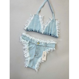 بیکینی جین نگین دار مدل گره ای برند فیتن