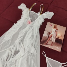 خرید ربد شامبر ساتن آستین گیپور ماکسی بربد شامبر ساتن آستین گیپور ماکسی بلند برند اما